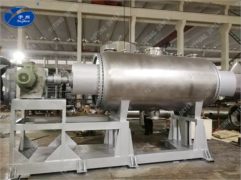(2) 產品質量好:由于干燥過程中,耙齒不斷正反轉動,被干燥物料攪拌均勻,避免的物料的過熱,水分也容易逸出,殼得到低溫度的產品。由于產品粒度細,不需粉碎即可包裝。