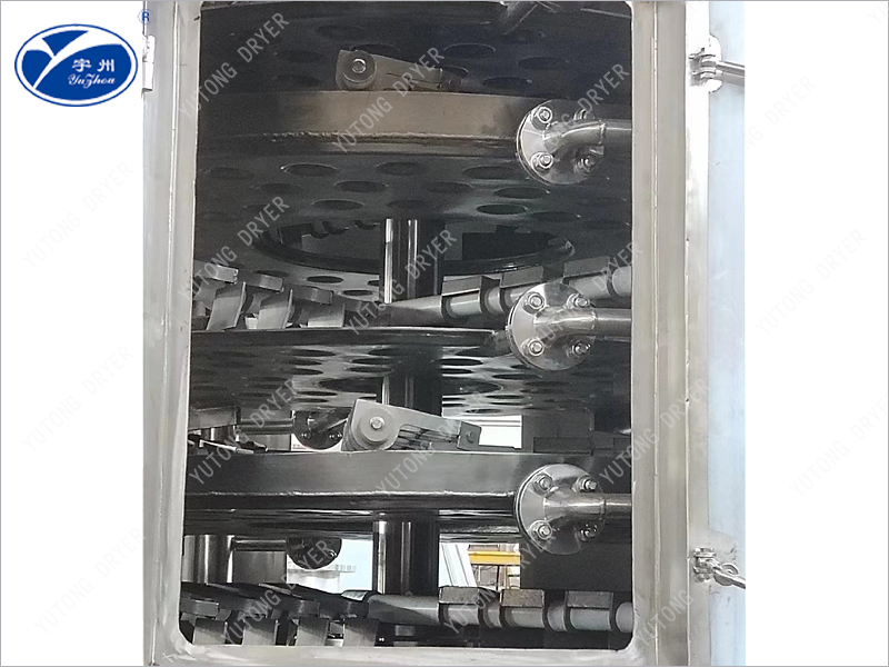 (6) 各層料盤溫度可控,達到規定的溫度分布。 干燥冷卻并用,能獲得質量均勻,機械應力小的干燥產品;