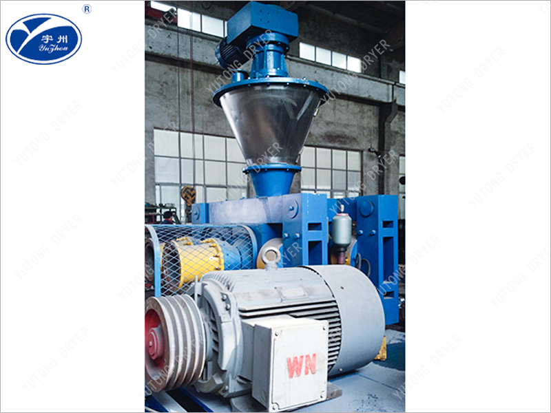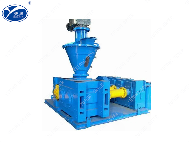 各種干粉物料從設(shè)備頂部加入,經(jīng)脫氣、螺旋預(yù)壓進(jìn)入兩個(gè)平等軋輥,軋輥相對(duì)旋轉(zhuǎn),物料被強(qiáng)制送入兩輥之間,帶槽軋輥將物料咬入輥隙被強(qiáng)制壓縮,物料通過壓縮區(qū)后,物料的表面張力和重力使之自然脫出。脫出后的指條狀團(tuán)塊進(jìn)入碎粒機(jī)由旋轉(zhuǎn)刀排破碎,被破碎的物料進(jìn)入整粒機(jī)通過滾動(dòng)刀排使顆粒和部分粉狀物料進(jìn)入旋振篩進(jìn)行篩分。合格品通過輸送機(jī)被送入成品倉。粉狀篩下物料通過輸送機(jī)再次被送回原料倉進(jìn)行二次輥壓,擠壓力的大小可根據(jù)造粒操作的需要由液壓油缸的壓力進(jìn)行調(diào)節(jié)。 通過改變輥面開槽形式,可得到片狀、條狀、扁球狀物料。
