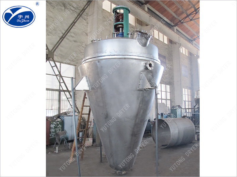 Основная часть устройства находится в вертикальном состоянии, а спиральная полоса с внутренним подогревом циркулирует и перемешивается, чтобы поднять движение. После того, как материал поступает в сушильную камеру, он нагревается оболочкой и перемешиваемой спиральной лентой, последовательно перемешивается спиралью, переворачивается, поднимается и опускается, так что материал постоянно контактирует со стенкой нагревательной камеры для принудительного теплообмена. Растворитель, испаряющийся при нагревании, извлекается в вакууме для достижения цели быстрой сушки.