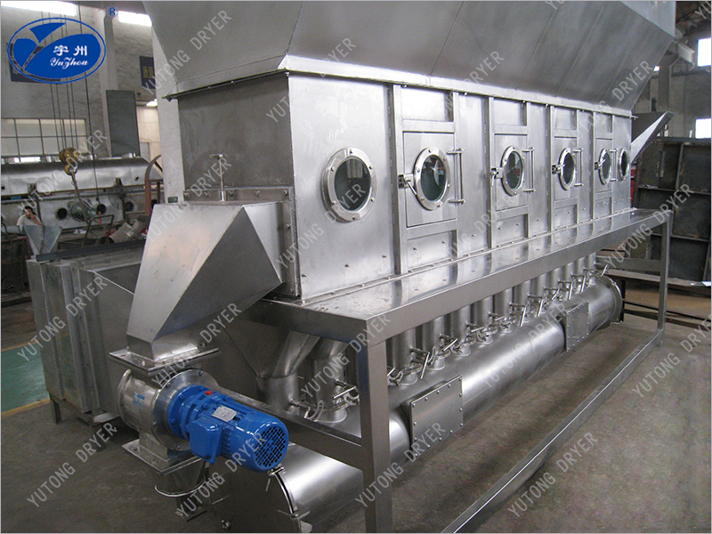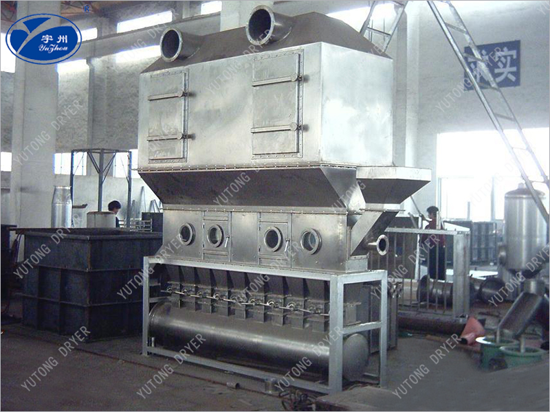 Чистый горячий воздух распределяется в кровать через клапанную пластину, а влажный материал, поступающий из питателя, кипит горячим воздухом. Из - за широкого контакта между горячим воздухом и материалом процесс теплопередачи усиливается, поэтому он может высыхать за относительно короткое время. При использовании непрерывного типа материал поступает с одного конца кровати, кипит и высыхает от нескольких секунд до нескольких минут, а затем автоматически вытекает с другого конца кровати. Устройство обычно работает под отрицательным давлением.